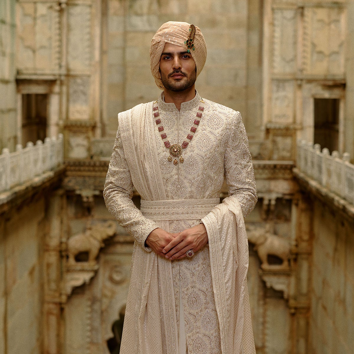 IVORY BROCADE SHERWANI SET