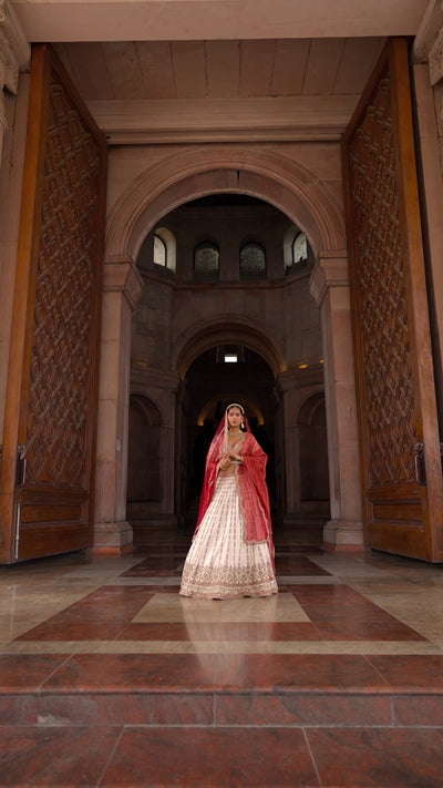 Ivory Taffeta Bridal Lehenga Choli Set with Red Dupatta